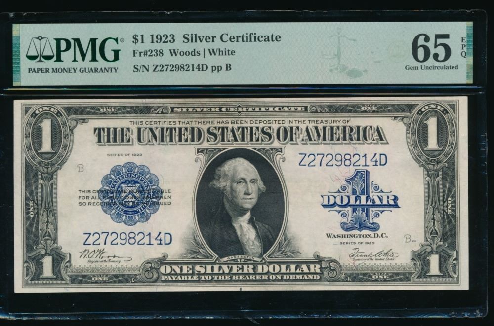 One 1923 $1 Silver Certificate PMG 65EPQ.