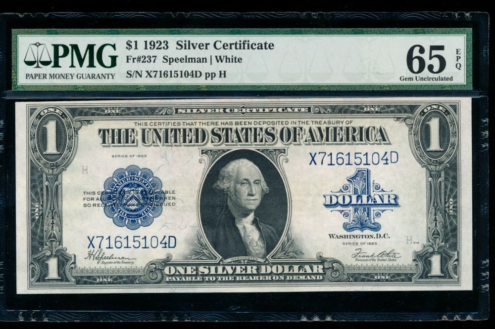 One 1923 $1 Silver Certificate PMG 65EPQ.