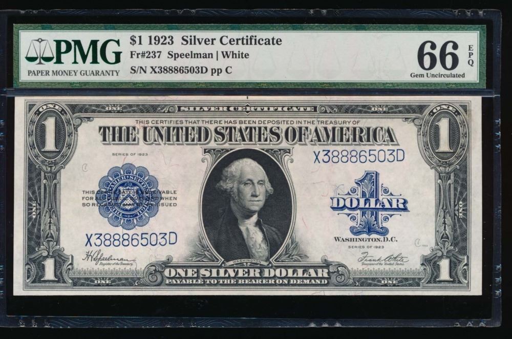 One 1923 $1 Silver Certificate PMG 66EPQ.