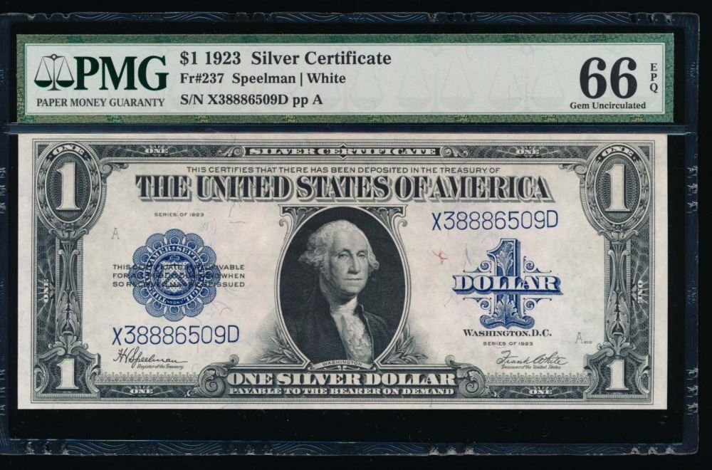 One 1923 $1 Silver Certificate PMG 66EPQ.