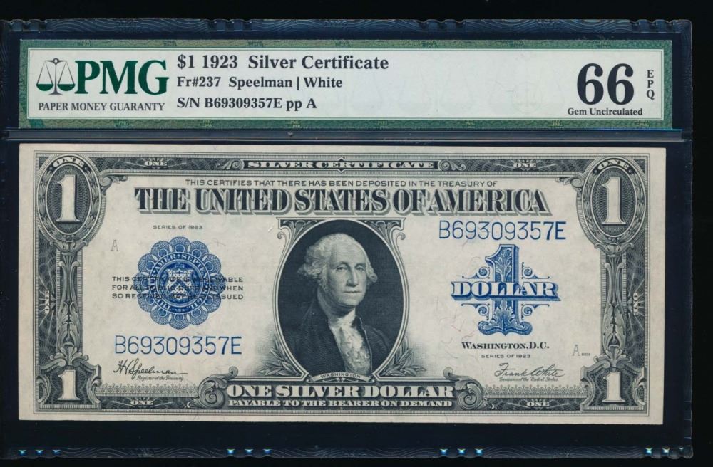 One 1923 $1 Silver Certificate PMG 66EPQ.