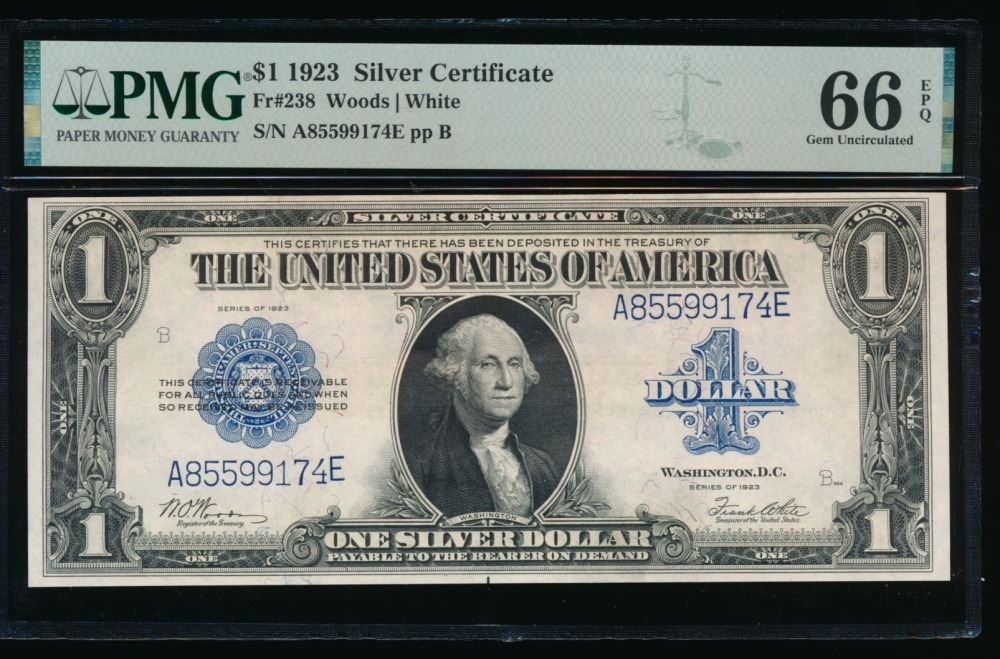 One 1923 $1 Silver Certificate PMG 66EPQ.