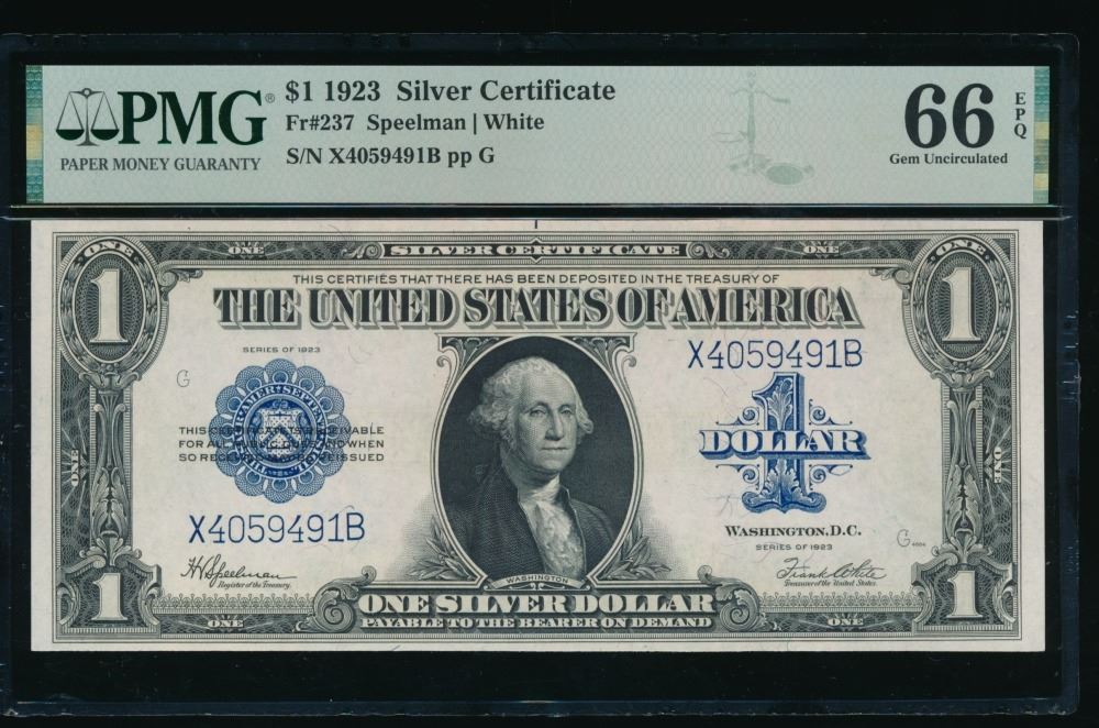 One 1923 $1 Silver Certificate PMG 66EPQ.