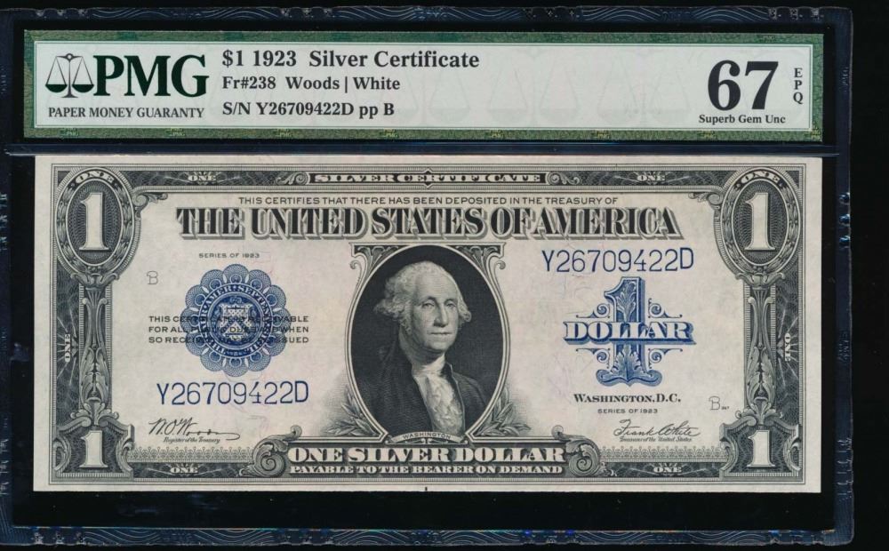 One 1923 $1 Silver Certificate PMG 67EPQ.