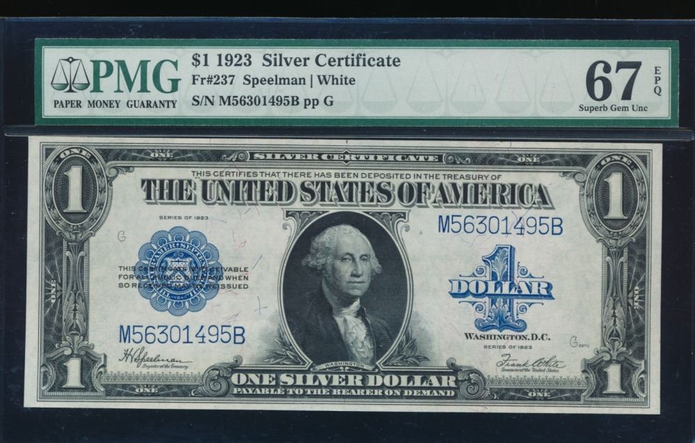 One 1923 $1 Silver Certificate PMG 67EPQ.