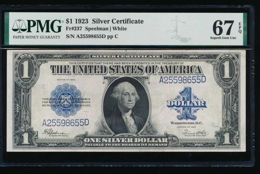 One 1923 $1 Silver Certificate PMG 67EPQ.