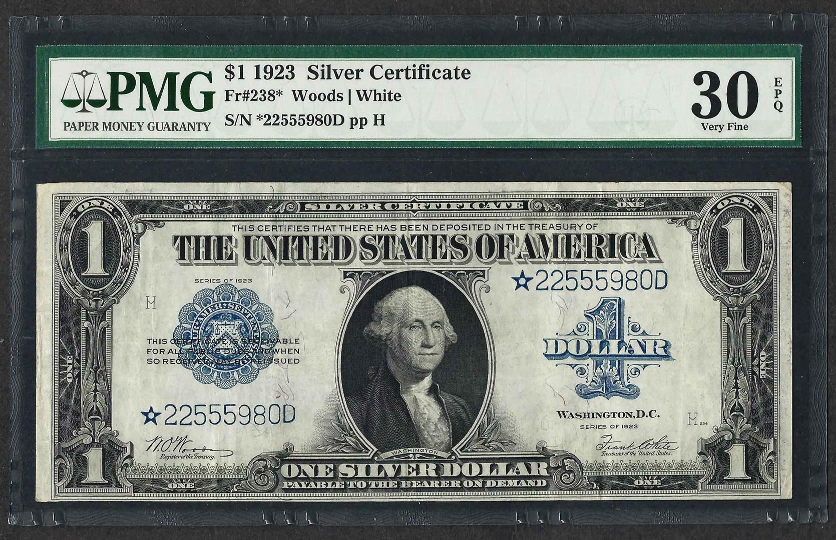 One 1923 $1 Silver Certificate STAR Note Fr.238* PMG Very Fine 30EPQ. PMG Certified.