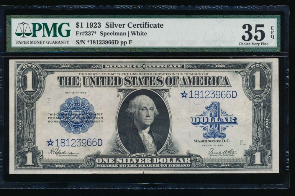 One 1923 $1 Silver Certificate STAR Note PMG 35EPQ.