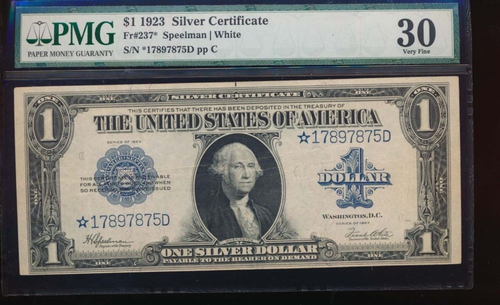 One 1923 $1 Silver Certificate Star Note PMG 30.