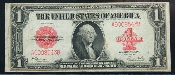 1923, $1 United States Note. PCGS Apparent Very Fine 20. . Fr-40. Although PCGS Currency assigned this note an "Apparent" grade for a couple of minor problems, it is not alltogether unattractive. It has a little minor staining and some almost unnoticeable bleedthrough of the red overprint onto the back (often caused by excessive humidity or the note having been slightly wet at some point in time). This is a difficult type note to locate in any grade between VG and Uncirculated, and any budget-conscious collectors would be advised to consider this example.