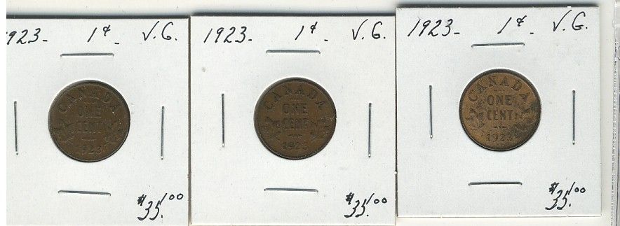 1923 1¢ VG. Lot of 3 coins. (PBA).