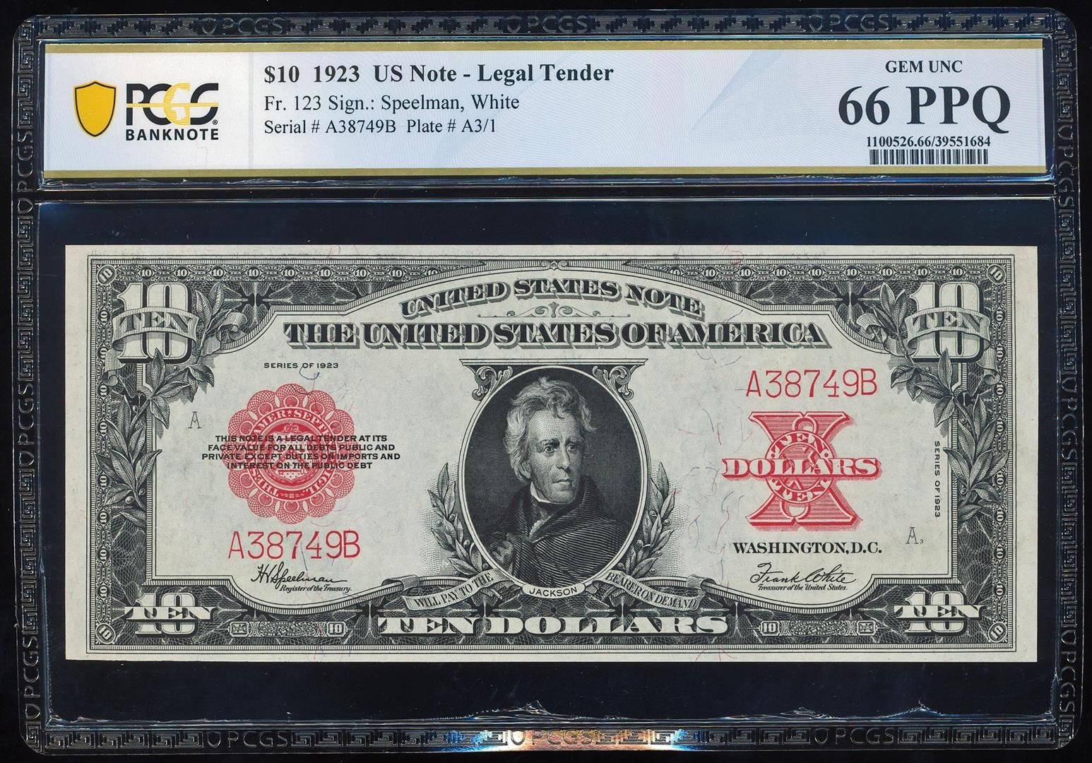 One 1923 $10 "Poker Chip" Legal Tender Note Fr.123 PCGS Gem Uncirculated 66PPQ> PCGS Graded.