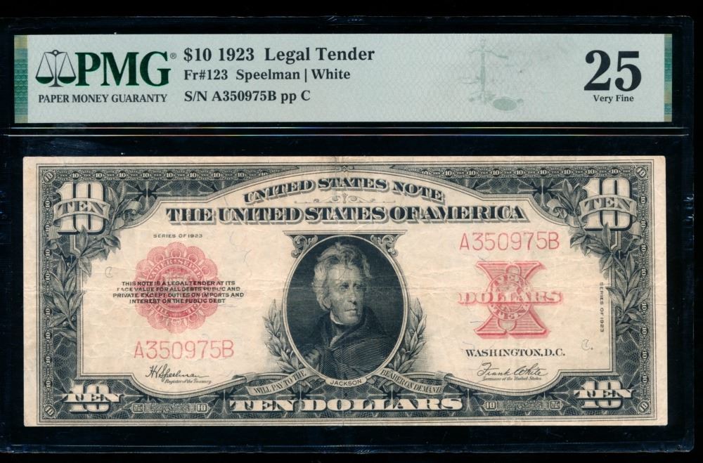 1923 $10 Poker Chip Legal Tender Note PMG 25