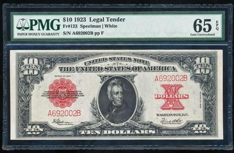 One 1923 $10 Poker Chip Legal Tender Note PMG 65EPQ.