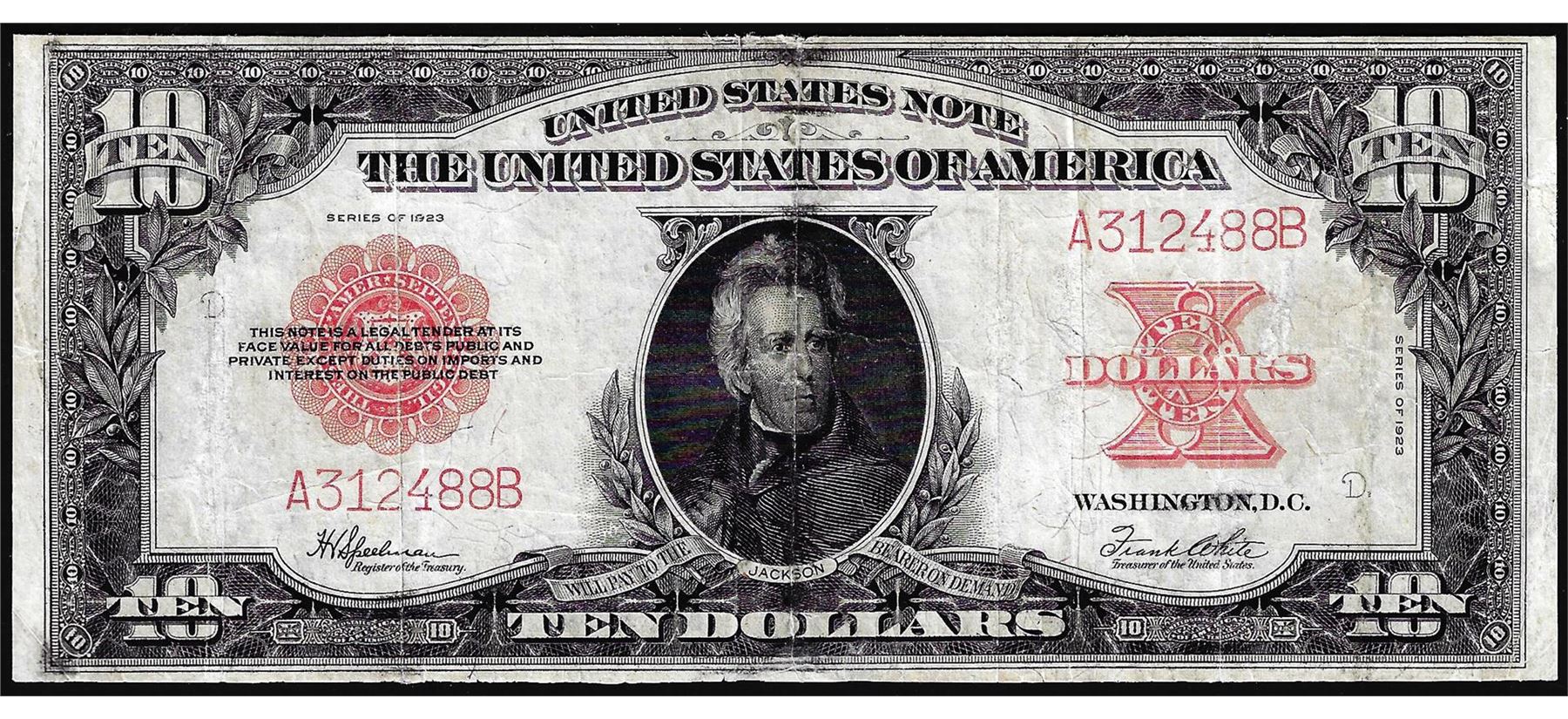 One 1923 $10 "Poker Chip" Legal Tender Note.