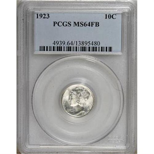 <B>1923 10C MS64 Full Bands PCGS.</B></I> PCGS Population (319/463). NGC Census: (197/292). Mintage: 50,130,000. Numismedia Wsl. Price for NGC/PCGS coin in MS64: $57. (#4939)<BR><BR><B>Coin Engraver:</B> Adolph A. Weinman<BR><BR><b>Shipping:</b> Coins & Currency (<a target="_blank" href="http://www.heritageauctions.com/common/shipping.php">view shipping information</a>\)
