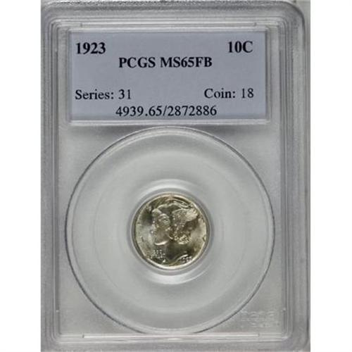 <B>1923 10C MS65 Full Bands PCGS.</B></I> PCGS Population (274/211). NGC Census: (176/121). Mintage: 50,130,000. Numismedia Wsl. Price for NGC/PCGS coin in MS65: $275. (#4939)<BR><BR><B>Coin Engraver:</B> Adolph A. Weinman<BR><BR><b>Shipping:</b> Coins & Currency (<a target="_blank" href="http://www.heritageauctions.com/common/shipping.php">view shipping information</a>)