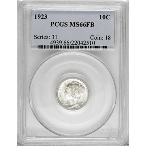 <B>1923 10C MS66 Full Bands PCGS.</B></I> PCGS Population (147/57). NGC Census: (92/26). Mintage: 50,130,000. Numismedia Wsl. Price for NGC/PCGS coin in MS66: $360. (#4939)<BR><BR><B>Coin Engraver:</B> Adolph A. Weinman<BR><BR><b>Shipping:</b> Coins & Currency (<a target="_blank" href="http://www.heritageauctions.com/common/shipping.php">view shipping information</a>)
