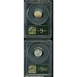 <B>1923<10C> MS65 Full Bands PCGS,</B></I> lemon-gold color hugs the peripheries while the centers offer cream-gray patina; and a <B>1926 MS65 Full Bands PCGS,</B></I> the left reverse border is lightly die doubled, golden-brown patina graces the obverse margin, well struck.<BR><I>From The Reed Hawn Collection of Mercury Dimes.</B></I> 2 coins <BR><BR><B>Important notice:</B> Heritage usually auctions material at the rate of 200-250 lots per hour. On some occasions eBay Live bid software or the Internet may not be able to keep up with the pace of the auction. We recommend placing a realistic absentee bid now as insurance to avoid disappointment. Occasionally the auctioneer may eliminate or reject an eBay Live bid, and the auctioneer may also reopen a lot after the close of the eBay live bidding (usually because we missed an audience bid), and may reject your bid even if it shows you as the winning bidder. By bidding via eBay Live, you agree that Heritage may award the lot to another bidder at its sole discretion under the circumstances described above or any other reasonable circumstances. Since eBay bids are not shown to us until we open the lot on the floor, we treat those bids just like floor bids. In most cases the floor responds before the eBay bid is presented to us, due to Internet lag time, so for consistency we have made it a policy that floor bids are always considered first over tie eBay live bids. Also please note that all Heritage lots purchased through eBay Live carry a 20% Buyer's Premium. Please make sure you read the Terms and Conditions before you bid. </span></font></tr></table></td></tr></table>