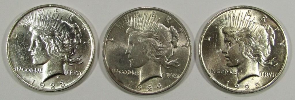1923, 1924, 1925 PEACE DOLLARS CIRC OR BETTER