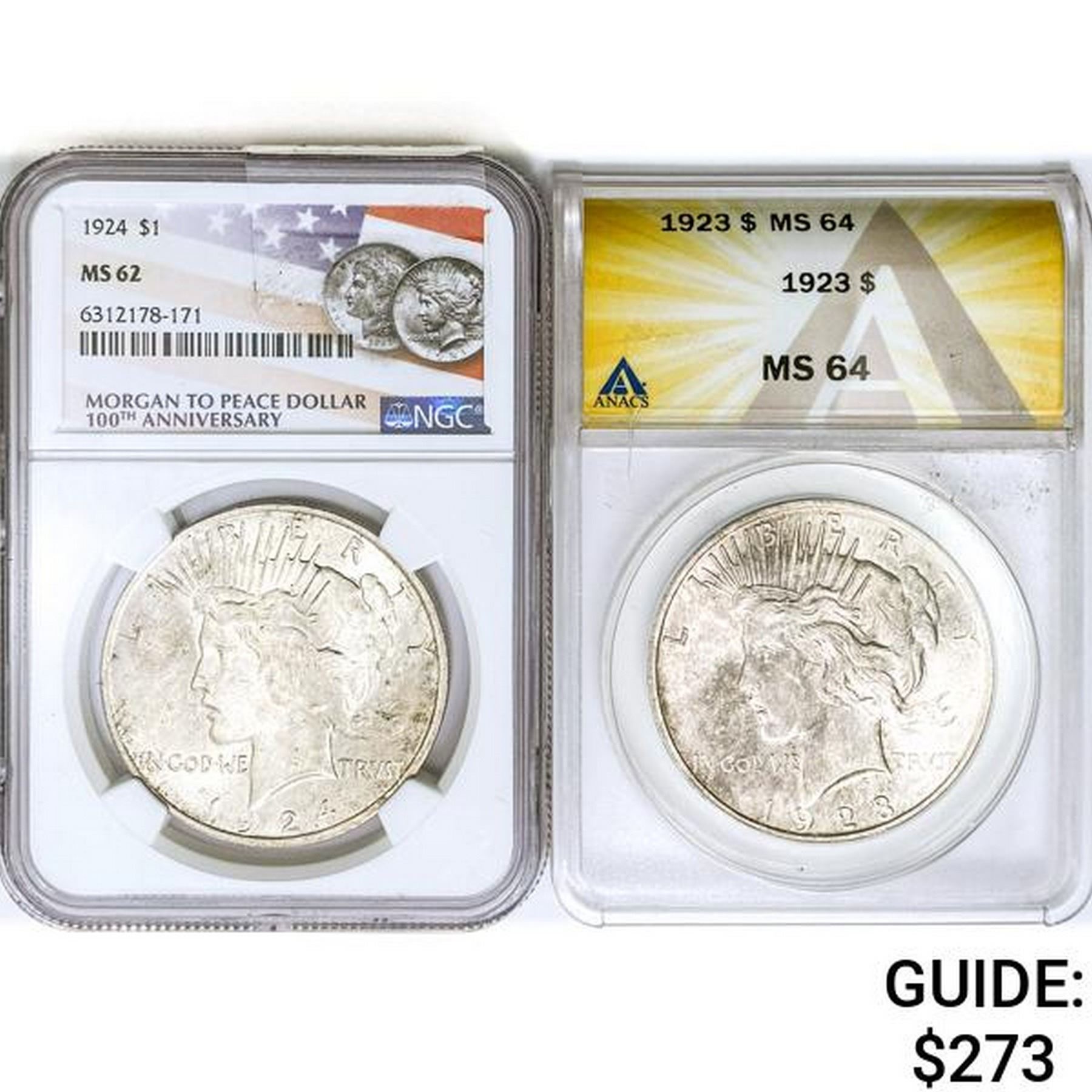 1923-1924 [2] Silver Peace Dollar NGC/ANACS MS62/6