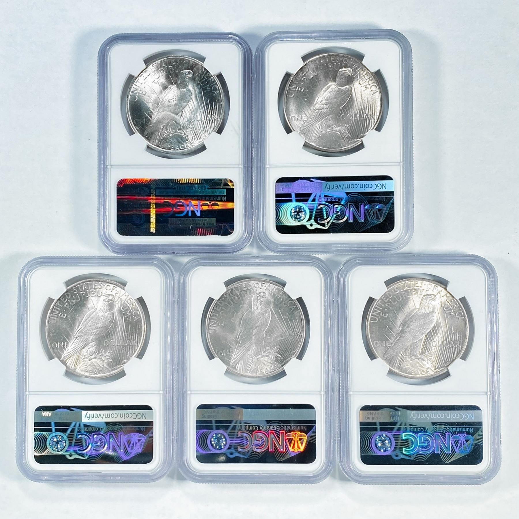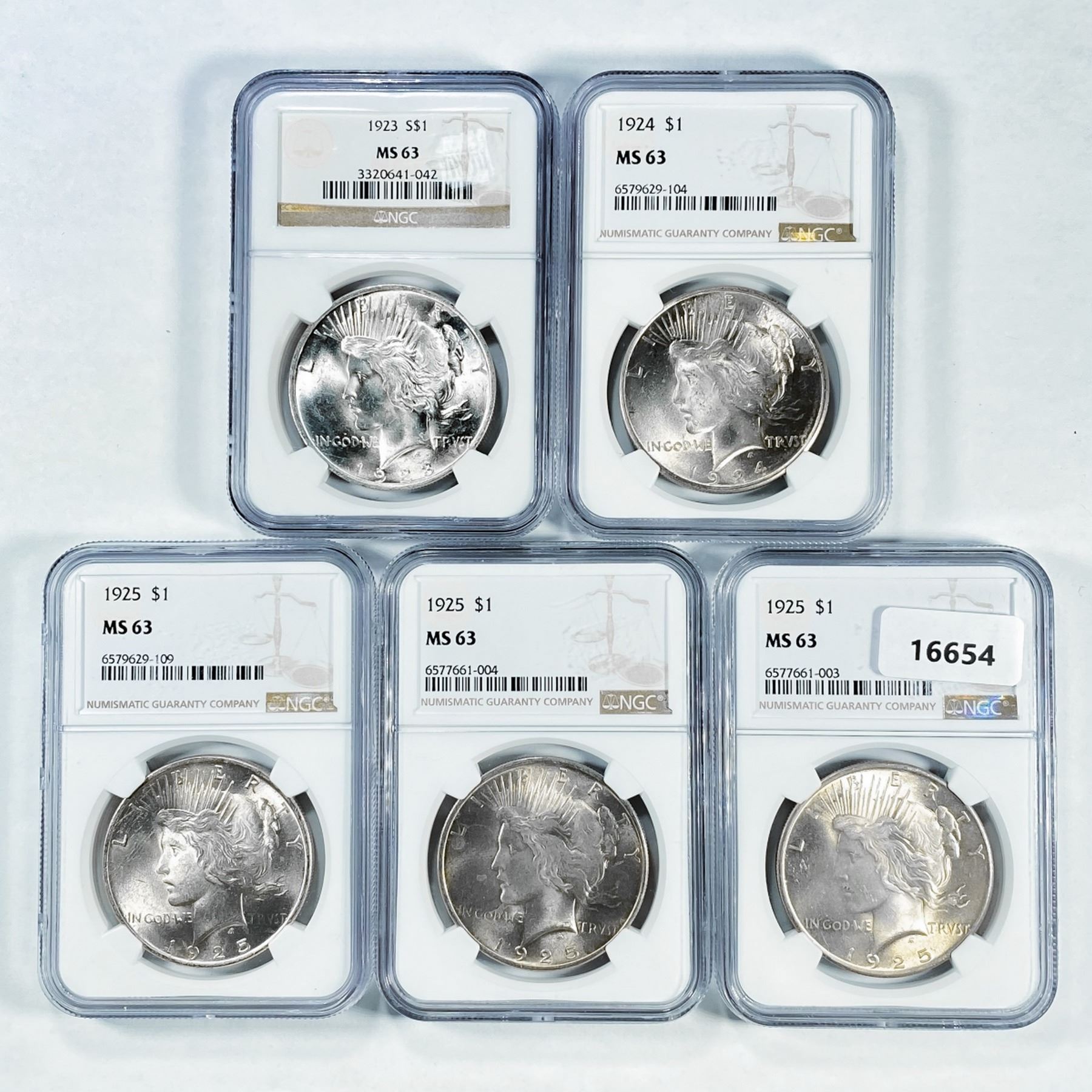 1923-1925 Set (5) Silver Peace Dollar NGC MS63