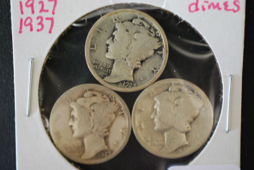 1923, 1927 & 1937 Mercury Dime; Lot of 3; Silver