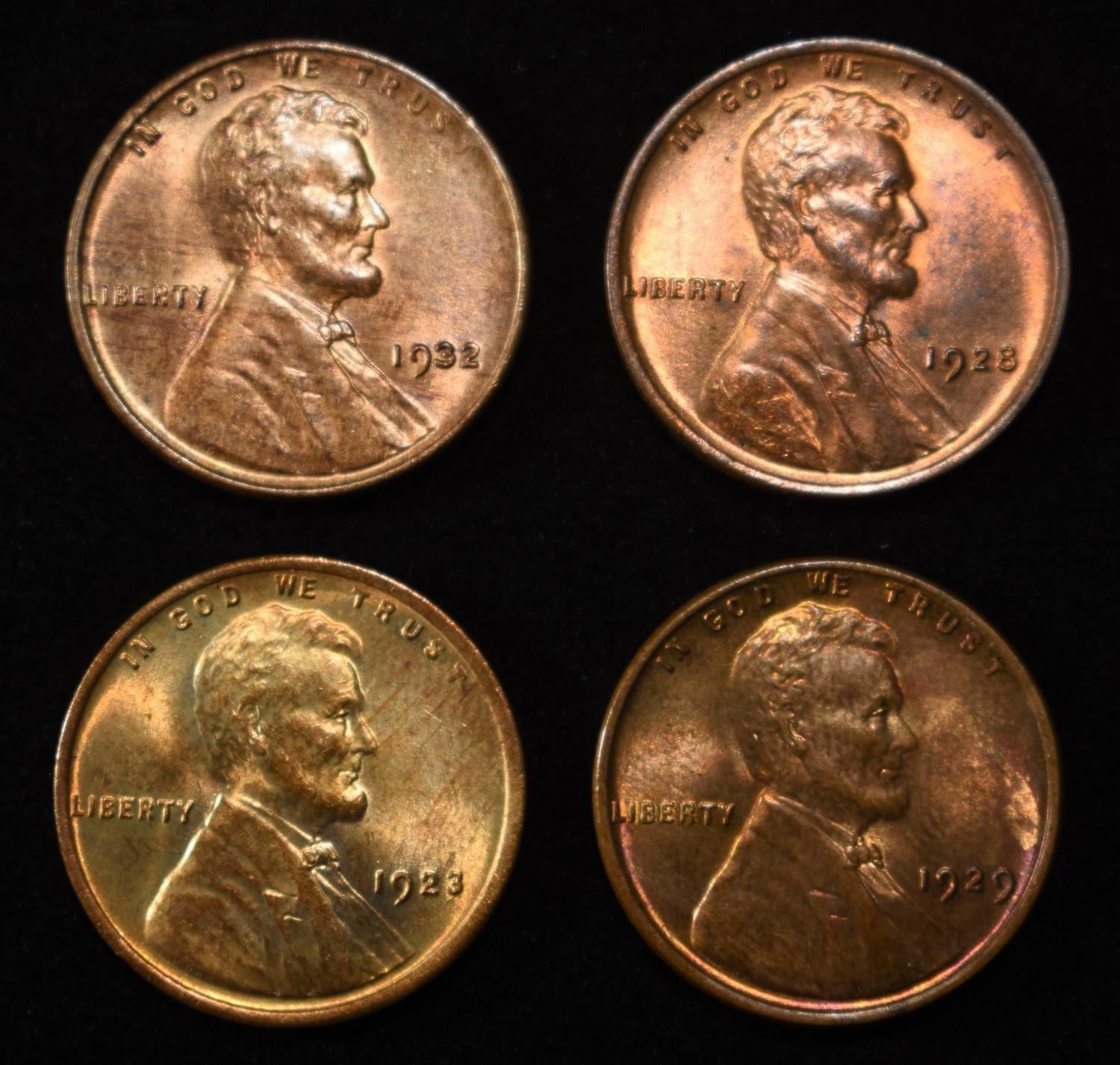 1923, 1928, 1929, 1932 LINCOLN CENTS BU