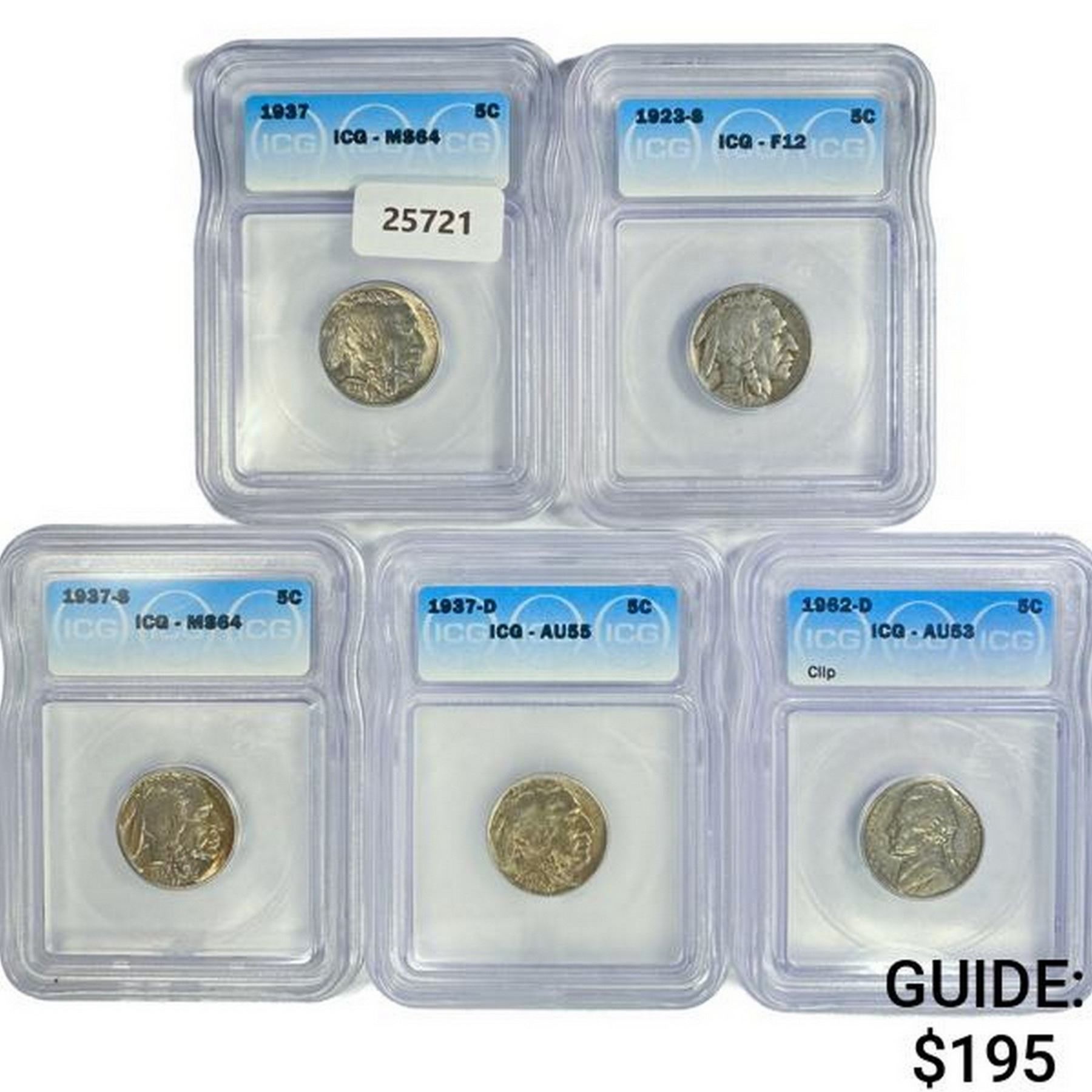 1923-1962 Set (5) 4 Buffalo & 1 Jefferson 5C ICG