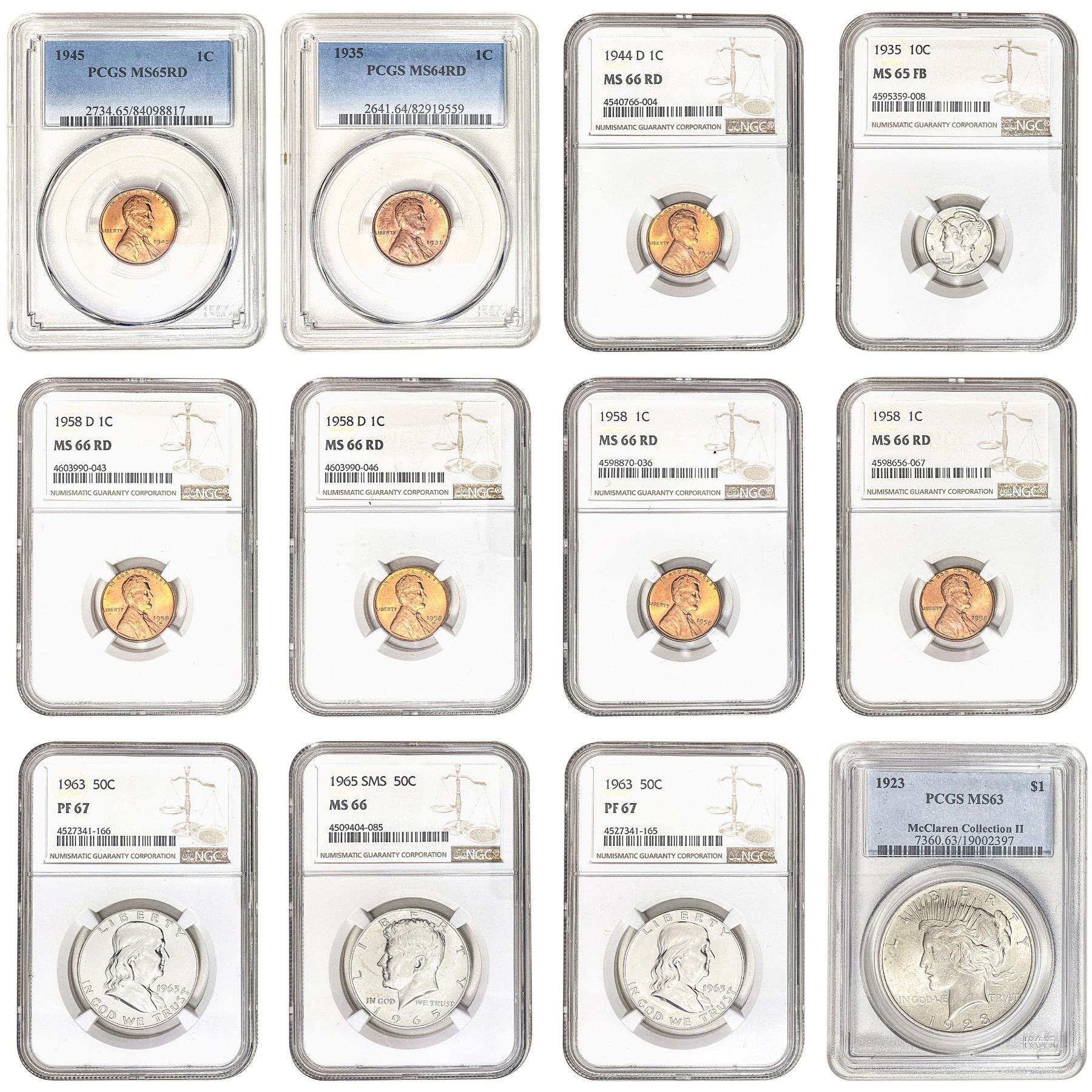 1923-1965 GEM BU US Coinage Lot [12 Coins] PCGS/NGC MS/PF63-67