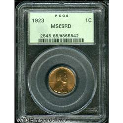 1923 1C MS65 Red PCGS. Apricot-orange and lime-gre <B>1923 1C MS65 Red PCGS.</B></I> Apricot-orange and lime-green colors are prominent on each side of this sparkling Gem. Well struck with just one or two small blemishes on obverse and reverse alike.<BR><I>From The Dennis Dewart Collection.</B></I> <BR><BR><B>Important notice:</B> Heritage usually auctions material at the rate of 200-250 lots per hour. On some occasions eBay Live bid software or the Internet may not be able to keep up with the pace of the auction. We recommend placing a realistic absentee bid now as insurance to avoid disappointment. Occasionally the auctioneer may eliminate or reject an eBay Live bid, and the auctioneer may also reopen a lot after the close of the eBay live bidding (usually because we missed an audience bid), and may reject your bid even if it shows you as the winning bidder. By bidding via eBay Live, you agree that Heritage may award the lot to another bidder at its sole discretion under the circumstances described above or any other reasonable circumstances. Since eBay bids are not shown to us until we open the lot on the floor, we treat those bids just like floor bids. In most cases the floor responds before the eBay bid is presented to us, due to Internet lag time, so for consistency we have made it a policy that floor bids are always considered first over tie eBay live bids. Also please note that all Heritage lots purchased through eBay Live carry a 20% Buyer's Premium. Please make sure you read the Terms and Conditions before you bid. This lot is being auctioned in conjunction with a live floor auction by Heritage Galleries & Auctioneers. All final auction and invoice information will be supplied by Heritage Galleries & Auctioneers, and all other information should be considered preliminary. Lot:5156