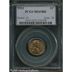 <B>1923 1C MS65 Red PCGS.</B></I> Well struck with bright mint-red color and carefully preserved, unmarked surfaces that glow with substantial luster. Only a few flyspecks, on each side, prevent an even higher grade designation from PCGS. Population: 161 in 65, 72 finer (1/05). Lot:5482