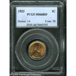 <B>1923 1C MS66 Red PCGS.</B></I> Well struck with beautiful light color, pleasing full luster, a few flyspecks in the upper left obverse field, and a small contact mark on Lincoln's beard. A lustrous Premium Gem. Lot:5485