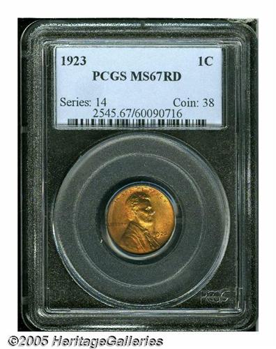 1923 1C MS67 Red PCGS. The matte-like, frosty sur