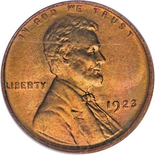 <B>1923 1C MS67 Red PCGS.</B></I> Ex: Joshua and Ally Walsh. Coruscating brick-red centers merge with violet and magenta borders on this stunning, lightly toned Superb Gem. The surfaces are finely granular and highly reflective. Boldly struck, as befitting the lofty grade, and lacking mentionable distractions. Population: 12 in 67, 1 finer (8/07).<BR><BR><B>Coin Engraver:</B> Victor D. Brenner<BR><BR><b>Shipping:</b> Coins & Currency (<a target="_blank" href="http://www.heritageauctions.com/common/shipping.php">view shipping information</a>)