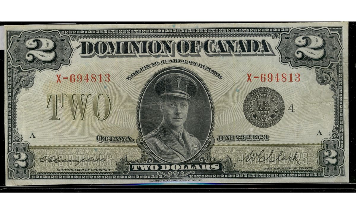 1923 $2 DC-26L #X-694813. VF+ issue.