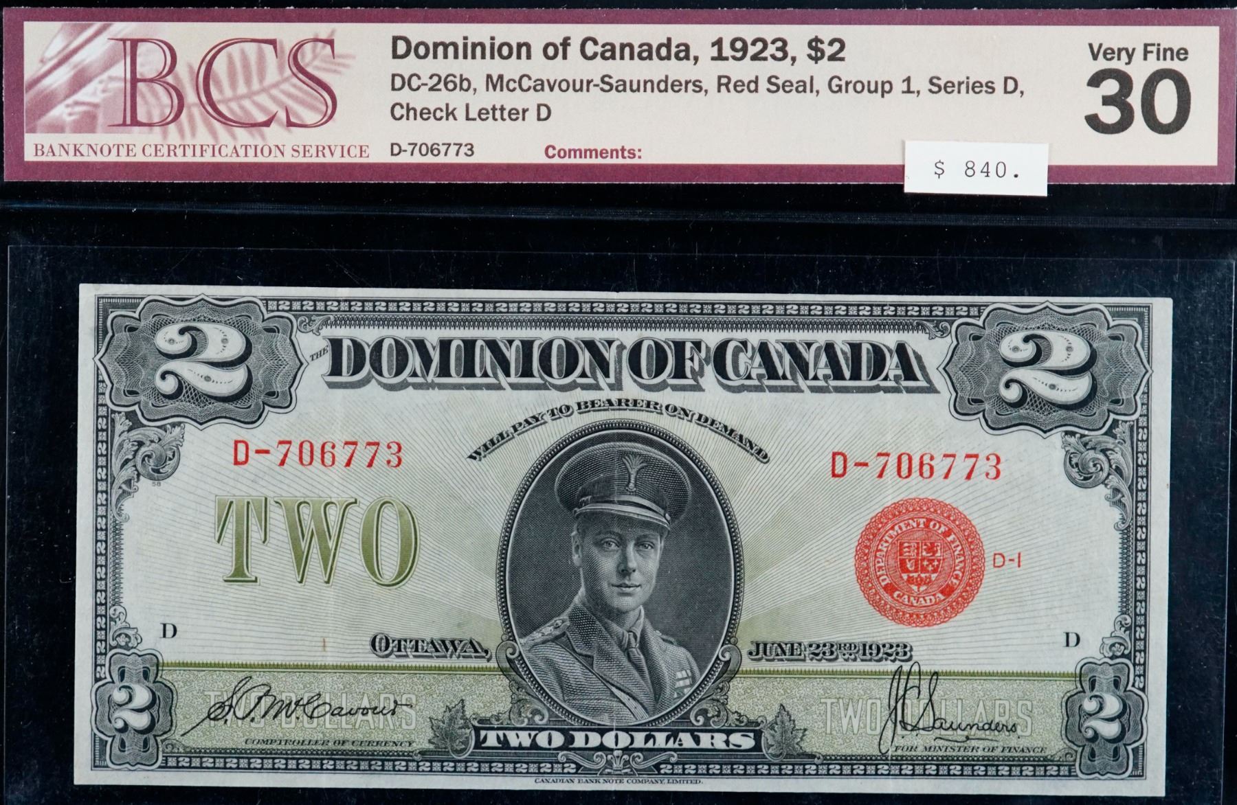 The cataloguer has taken every reasonable measure to ensure that all of the lots in this sale are as described and genuine. All raw coins and banknotes have been graded by the cataloger or the auction house which represent our best professional opinion. To grade coins and banknotes, we use Canadian grading standards, 42 years of experience and good conscience. However, grading is a subjective description in the opinion of the cataloger or the auction house. Among experts there are often differences of opinion on the grading and the eye appeal of a coin. The strike and the state of preservation are often debated. The Canadian Numismatic Company acts as an agent between consignors and buyers. The Canadian Numismatic Company does not guarantee that any coin or banknote cataloged will meet the standards, or the grade, of any third party grading companies. No warranty, whether impressed or implied. Items are as is, no warranty given. We cannot accept responsibility and waive all liability resulting in financial losses, and or incidentals accruing from the sale of any items, nor can we guarantee that items graded by third party services will grade the same if submitted to a different grading service or re-submitted to the same company. Statements by The Canadian Numismatic Company regarding the condition, the eye appeal, the strike and the population of items are for guidance only. All lots offered are sold "AS IS". Title to all lots remains with the auction house until paid for in full by the purchaser. But they are held at the risk of the purchaser once the time of the sale.