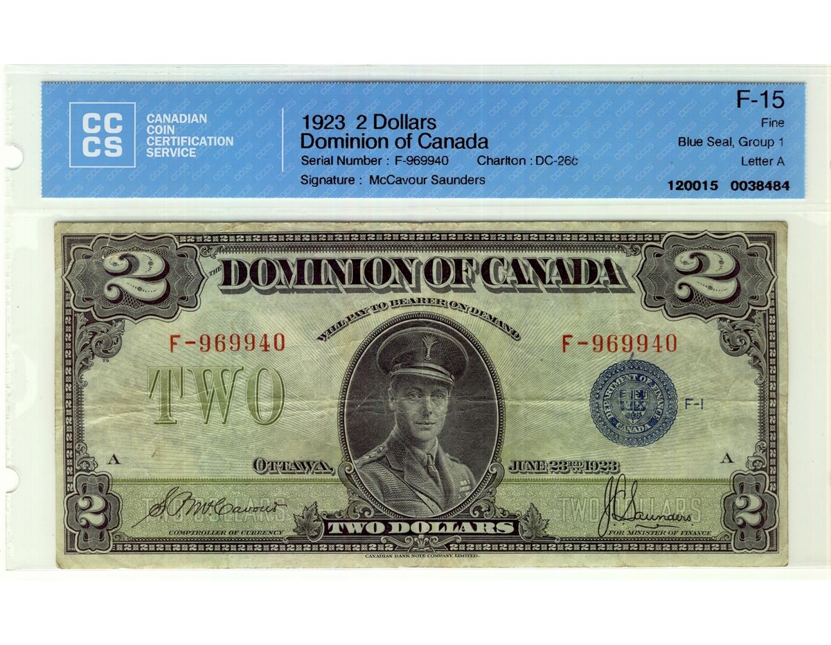 1923 $2 DC-26c #F-969940, CCCS F15.