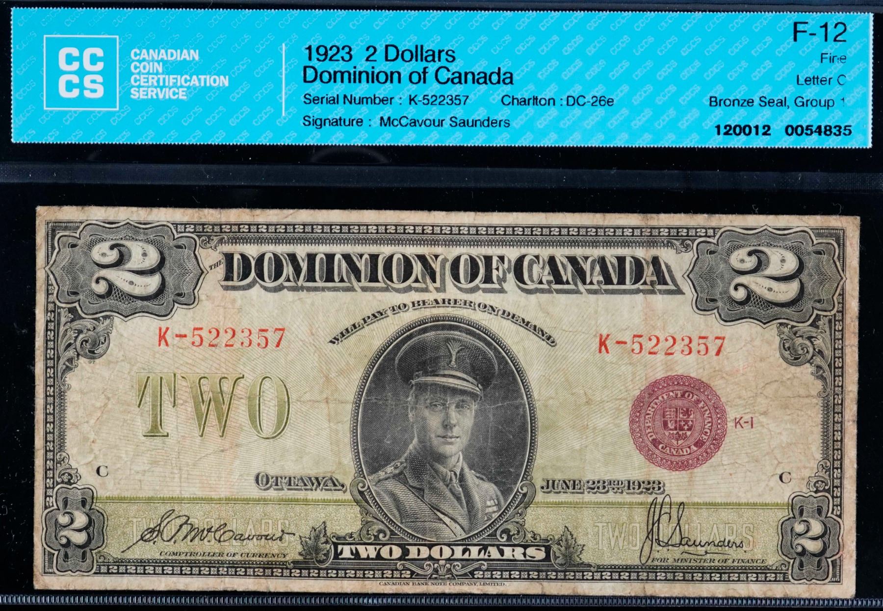 1923 $2 DC-26e #K-522357 CCCS F12