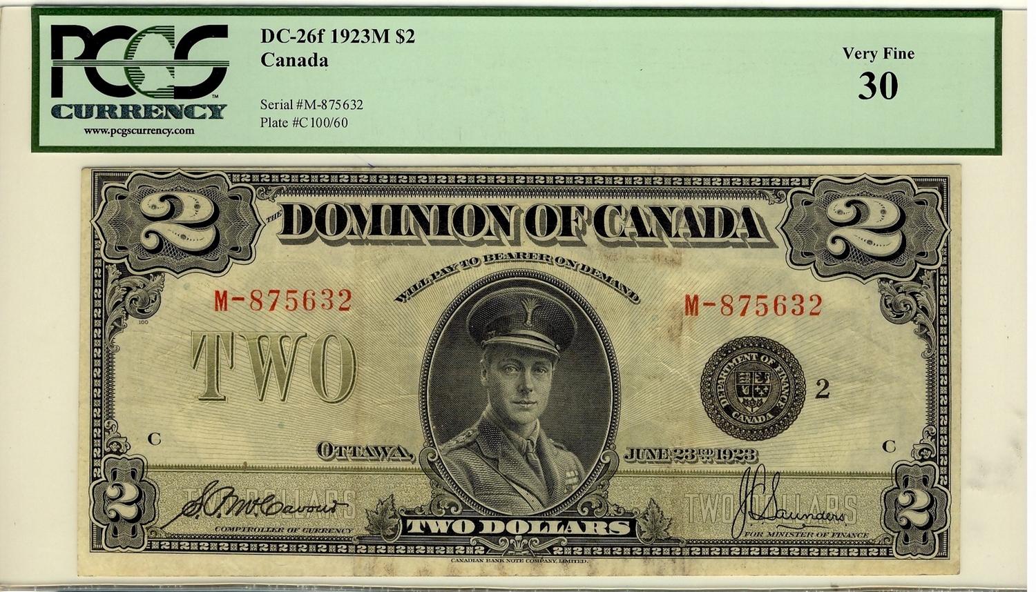 1923 $2 DC-26f #M-875632 PCGS VF30.
