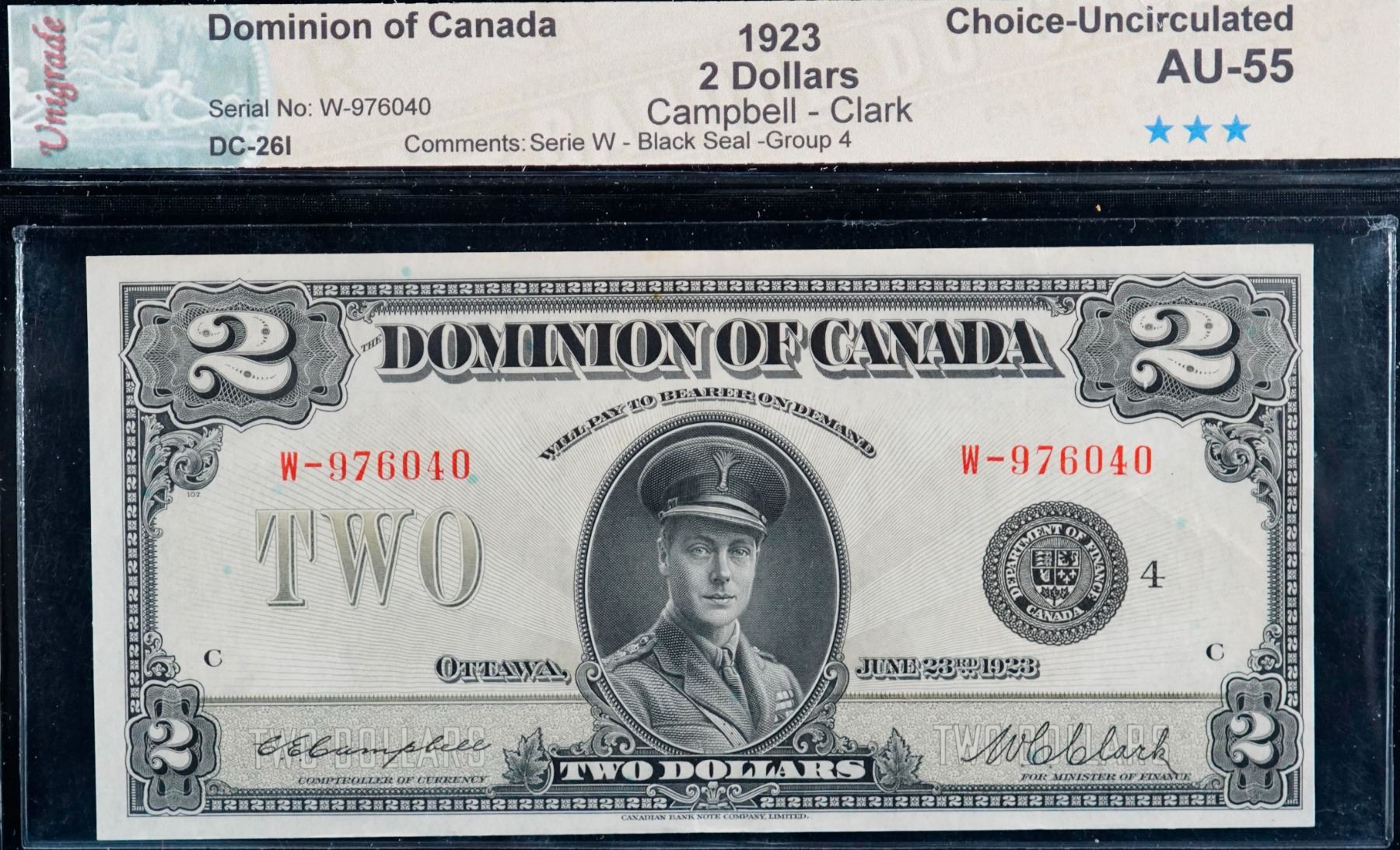 The cataloguer has taken every reasonable measure to ensure that all of the lots in this sale are as described and genuine. All raw coins and banknotes have been graded by the cataloger or the auction house which represent our best professional opinion. To grade coins and banknotes, we use Canadian grading standards, 42 years of experience and good conscience. However, grading is a subjective description in the opinion of the cataloger or the auction house. Among experts there are often differences of opinion on the grading and the eye appeal of a coin. The strike and the state of preservation are often debated. The Canadian Numismatic Company acts as an agent between consignors and buyers. The Canadian Numismatic Company does not guarantee that any coin or banknote cataloged will meet the standards, or the grade, of any third party grading companies. No warranty, whether impressed or implied. Items are as is, no warranty given. We cannot accept responsibility and waive all liability resulting in financial losses, and or incidentals accruing from the sale of any items, nor can we guarantee that items graded by third party services will grade the same if submitted to a different grading service or re-submitted to the same company. Statements by The Canadian Numismatic Company regarding the condition, the eye appeal, the strike and the population of items are for guidance only. All lots offered are sold "AS IS". Title to all lots remains with the auction house until paid for in full by the purchaser. But they are held at the risk of the purchaser once the time of the sale.