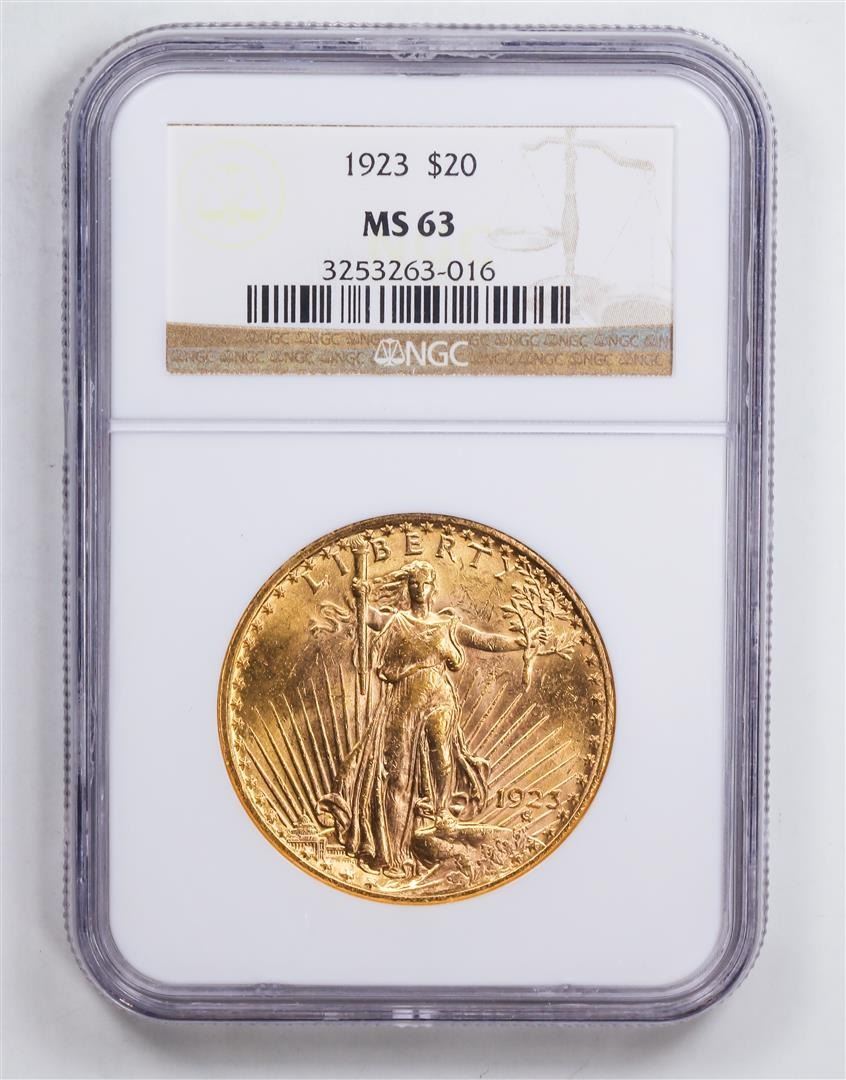 One 1923 $20 Double Eagle Gold Coin NGC MS63.