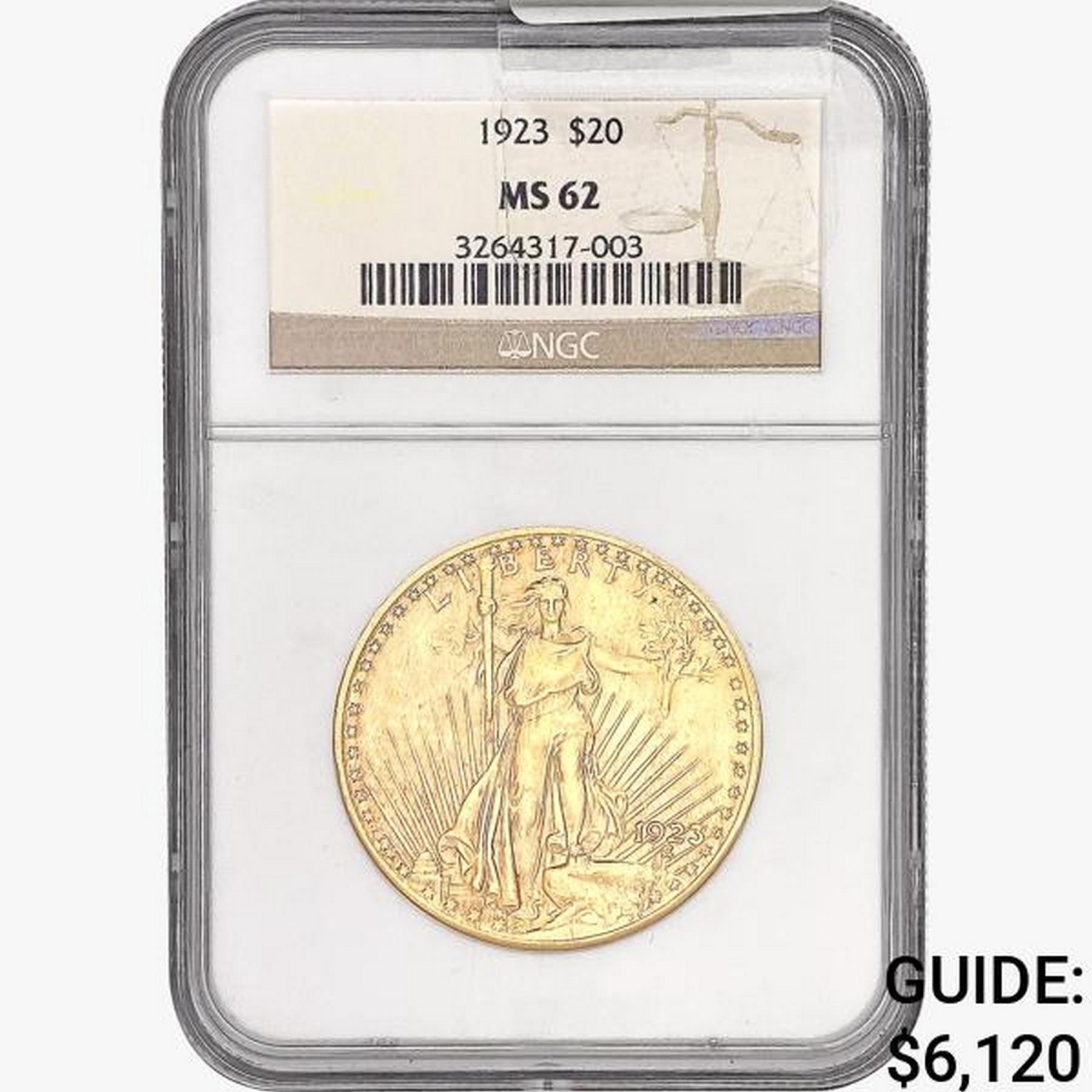 1923 $20 Gold Double Eagle NGC MS62