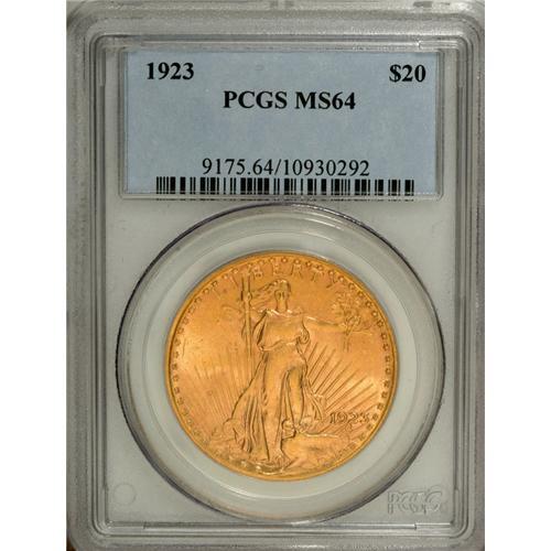 1923 $20 MS64 PCGS. Bright luster and clean fields cha
