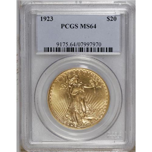 1923 $20 MS64 PCGS. Choice and solidly struck with min