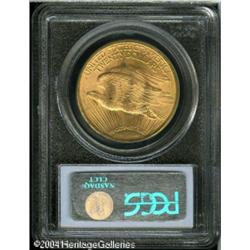 1923 $20 MS64 PCGS. Crisply struck and lustrous. A <B>1923 $20 MS64 PCGS.</B></I> Crisply struck and lustrous. A tiny dark spot above the eagle's breast does not distract. The 1923 is not nearly as common as the subsequent Philadelphia Mint issues, with a comparatively low mintage probably contributing to its relative scarcity. <BR><BR><B>Important notice:</B> Heritage usually auctions material at the rate of 200-250 lots per hour. On some occasions eBay Live bid software or the Internet may not be able to keep up with the pace of the auction. We recommend placing a realistic absentee bid now as insurance to avoid disappointment. Occasionally the auctioneer may eliminate or reject an eBay Live bid, and the auctioneer may also reopen a lot after the close of the eBay live bidding (usually because we missed an audience bid), and may reject your bid even if it shows you as the winning bidder. By bidding via eBay Live, you agree that Heritage may award the lot to another bidder at its sole discretion under the circumstances described above or any other reasonable circumstances. Since eBay bids are not shown to us until we open the lot on the floor, we treat those bids just like floor bids. In most cases the floor responds before the eBay bid is presented to us, due to Internet lag time, so for consistency we have made it a policy that floor bids are always considered first over tie eBay live bids. Also please note that all Heritage lots purchased through eBay Live carry a 20% Buyer's Premium. Please make sure you read the Terms and Conditions before you bid. This lot is being auctioned in conjunction with a live floor auction by Heritage Galleries & Auctioneers. All final auction and invoice information will be supplied by Heritage Galleries & Auctioneers, and all other information should be considered preliminary. Lot:7187
