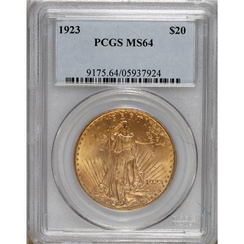 1923 $20 MS64 PCGS. Excellent strike definition shows