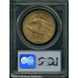 1923 $20 MS64 PCGS. Soft luster underlays straw-go <B>1923 $20 MS64 PCGS.</B></I> Soft luster underlays straw-gold patina. Generally well struck, with a few grade-limiting marks. <BR><BR><B>Important notice:</B> Heritage usually auctions material at the rate of 200-250 lots per hour. On some occasions eBay Live bid software or the Internet may not be able to keep up with the pace of the auction. We recommend placing a realistic absentee bid now as insurance to avoid disappointment. Occasionally the auctioneer may eliminate or reject an eBay Live bid, and the auctioneer may also reopen a lot after the close of the eBay live bidding (usually because we missed an audience bid), and may reject your bid even if it shows you as the winning bidder. By bidding via eBay Live, you agree that Heritage may award the lot to another bidder at its sole discretion under the circumstances described above or any other reasonable circumstances. Since eBay bids are not shown to us until we open the lot on the floor, we treat those bids just like floor bids. In most cases the floor responds before the eBay bid is presented to us, due to Internet lag time, so for consistency we have made it a policy that floor bids are always considered first over tie eBay live bids. Also please note that all Heritage lots purchased through eBay Live carry a 20% Buyer's Premium. Please make sure you read the Terms and Conditions before you bid. This lot is being auctioned in conjunction with a live floor auction by Heritage Galleries & Auctioneers. All final auction and invoice information will be supplied by Heritage Galleries & Auctioneers, and all other information should be considered preliminary. Lot:7186