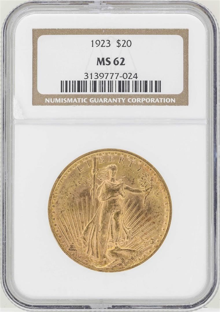 One 1923 $20 St. Gaudens Double Eagle Gold Coin NGC MS62. NGC Certified.