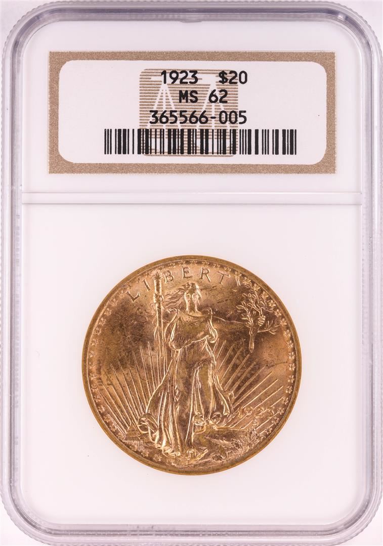 One 1923 $20 St. Gaudens Double Eagle Gold Coin NGC MS62. NGC Certified.